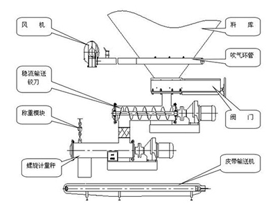 ?。?)穩(wěn)流給料螺旋和計(jì)量輸送螺旋之間為軟連接,可根據(jù)現(xiàn)場(chǎng)要求任意調(diào)整水平安裝角度。